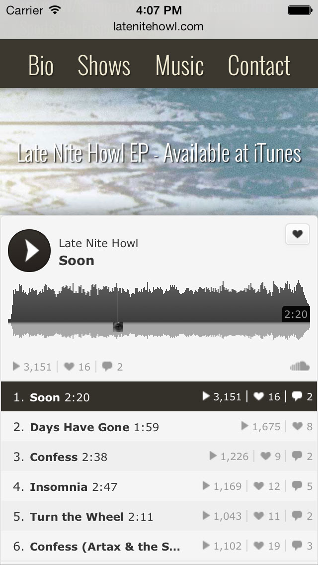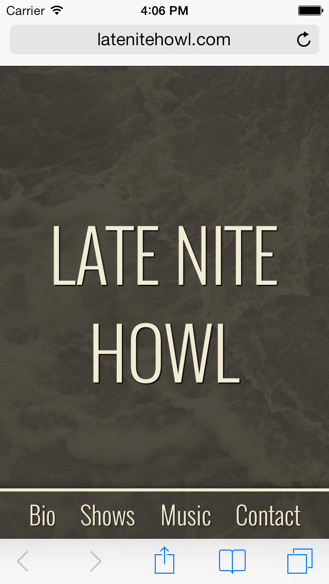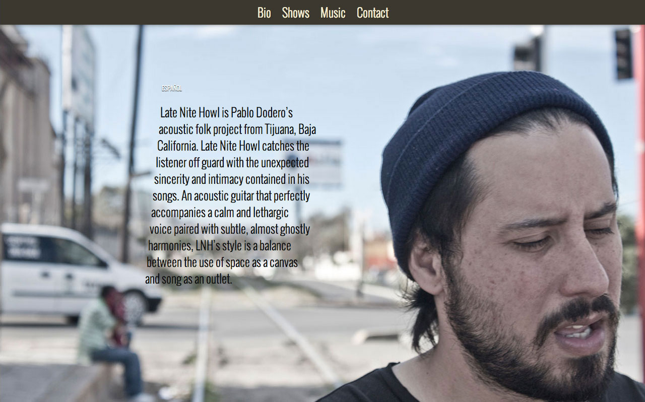 Late Nite Howl es el proyecto musical de Pablo Dodero, un músico originario de Tijuana, México. El sitio es sencillo, pero cumple su función. Totalmente responsivo, se adapta a cualquier dispositivo.